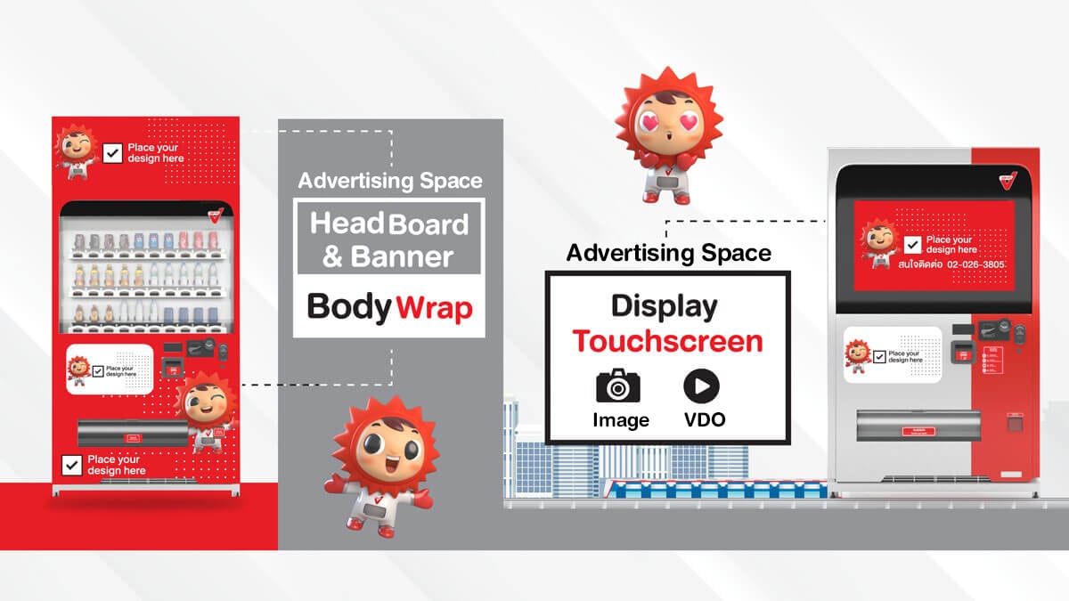 SVT provides advertising space through Sticker Wrap on vending machines and touchscreen Digital Advertising, capable of displaying both still images and VDOs. The service fees are calculated based on the number of machines, installation locations, duration of service, and consideration of the population density in the area where the vending machines are placed.
