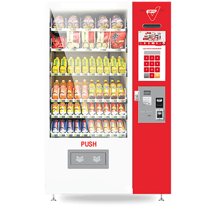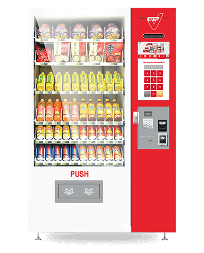 เครื่องจำหน่ายสินค้าอัตโนมัติแบบบานกระจกสำหรับใส่สินค้าได้หลากหลายประเภทและมองเห็นสินค้าที่จะเลือกซื้อ