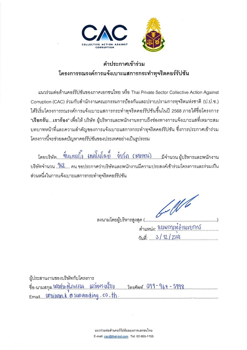 การเข้าร่วมงานในครั้งนี้สะท้อนถึงเจตนารมณ์ของบริษัทในการดำเนินธุรกิจด้วยความโปร่งใส ตรวจสอบได้ และยึดมั่นในหลักธรรมาภิบาล พร้อมทั้งสนับสนุนความร่วมมือกับทุกภาคส่วนในการสร้างสังคมปลอดทุจริต ไม่ว่าจะเป็นการเสริมสร้างวัฒนธรรมองค์กรด้านความซื่อสัตย์ การปลูกฝังพนักงานให้ปฏิบัติตามกฎหมายและจรรยาบรรณธุรกิจ ตลอดจนการส่งเสริมให้ทุกคนตระหนักถึงผลกระทบของการทุจริตทุกรูปแบบ