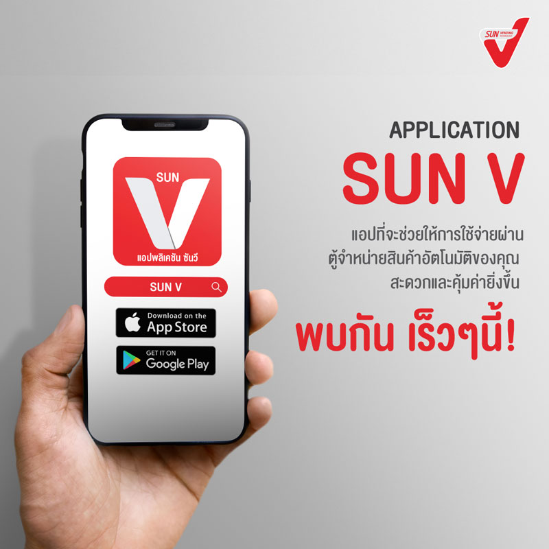 พบกันเร็วๆนี้ Application SUN V แอปที่จะช่วยให้การใช้จ่ายที่ตู้ SUN Vending สะดวกและคุ้มค่ายิ่งขึ้น ยิ่งกดบ่อยพอยท์ยิ่งเพิ่ม