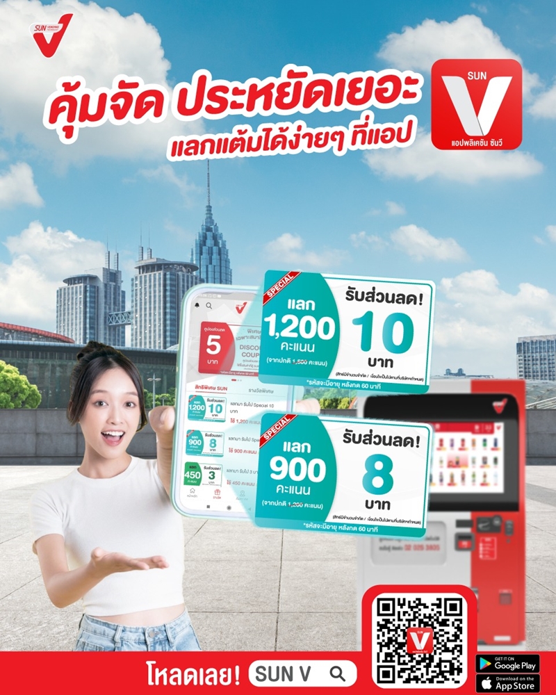 👉สายสะสมแต้มที่ตู้ซัน ห้ามพลาด!! เพราะตอนนี้ที่แอป SUN V มีคูปอง Special คุ้มกว่าเดิม ยิ่งมีแต้มเยอะ ก็แลกรับส่วนลดได้เยอะนะคร้าบ🤩